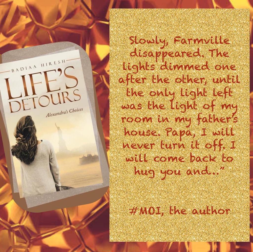 “Slowly, Farmville disappeared. The lights dimmed one after the other until the only light left was the light of my room in my father’s house.